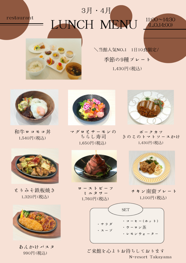 いつもN-resort Takayamaレストランをご利用いただき、誠にありがとうございます